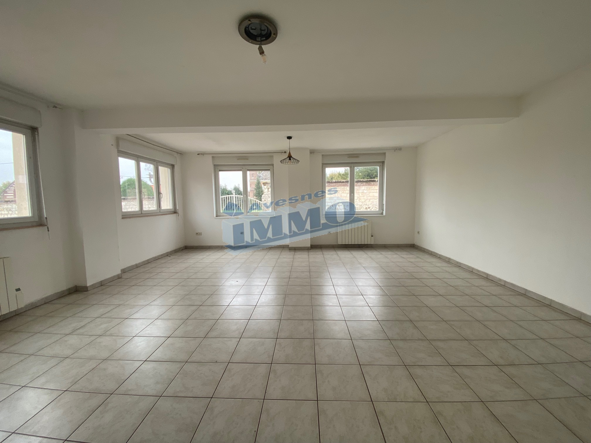 Logement de plain pied de 91 m² avec vaste salon/séjour lumineux ouvert sur cuisine équipée, 2 chambres, salle de bains, wc, espace rangement. Une opportunité !