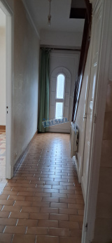 Charmante petite maison de ville bâtie sur 126 m² de 73 m² habitable comprenant un hall desservant un salon, une salle avec cheminée, une cuisine séparée, véranda, wc.
